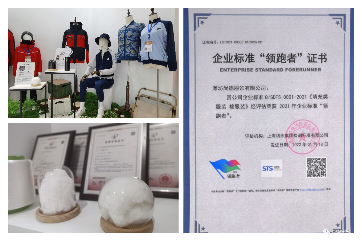 在技術創(chuàng)新方面,公司率先推出“雙色交織”、“植物染色”和“智能恒溫可穿戴”等技術,獲得發(fā)明專利7項,達到國際先進水平。公司還參與修訂國家標準、行業(yè)標準各1項,牽頭制訂團體標準1項,參與制訂團體標準5項。企業(yè)標準Q/SDFS 0001-2001《填充類服裝 棉服裝》曾榮獲2021年企業(yè)標準“領跑者”等多項榮譽,實現(xiàn)行業(yè)領先。